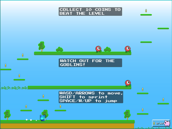 You can not move in mid air, so make sure you're ready to commit to your jumps! (this is totally a choice to add difficulty and definitely not because I'm a beginner and couldn't get the air movement to work in a satisfactory manner)